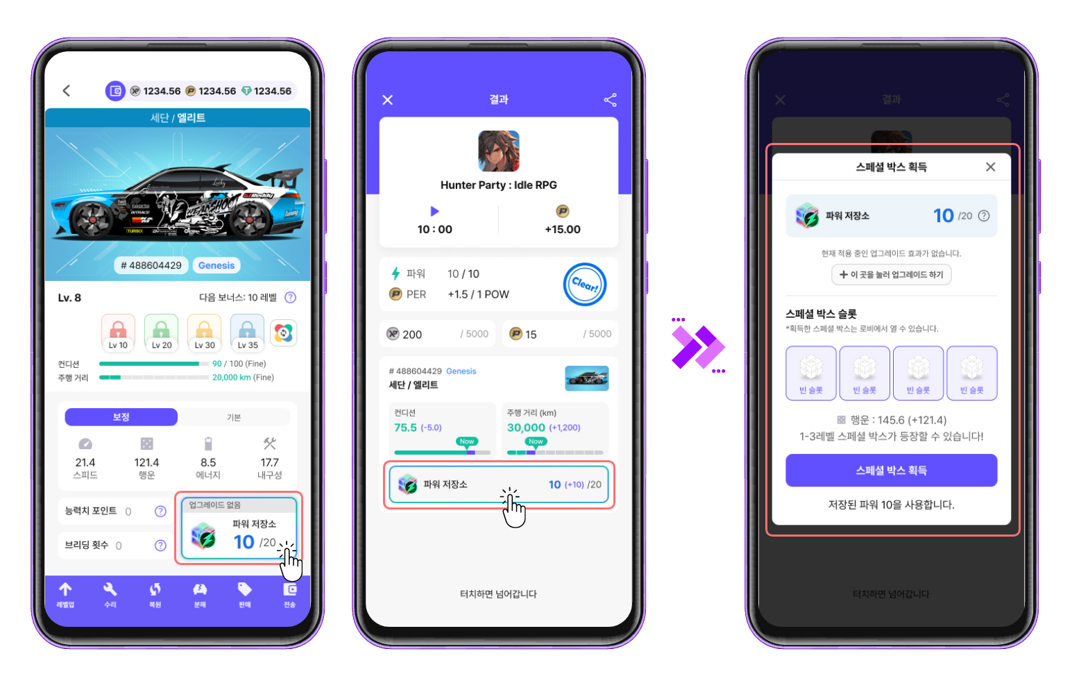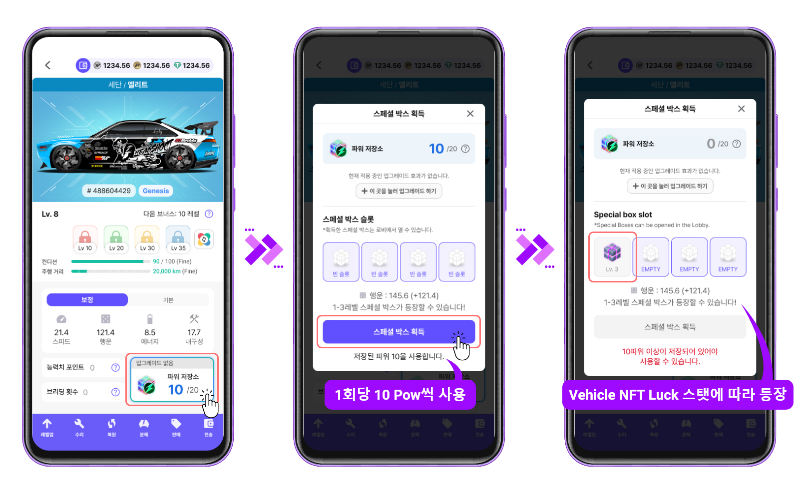 ### STEP 02. 저장된 파워를 통해 스페셜 박스를 획득하는 방법